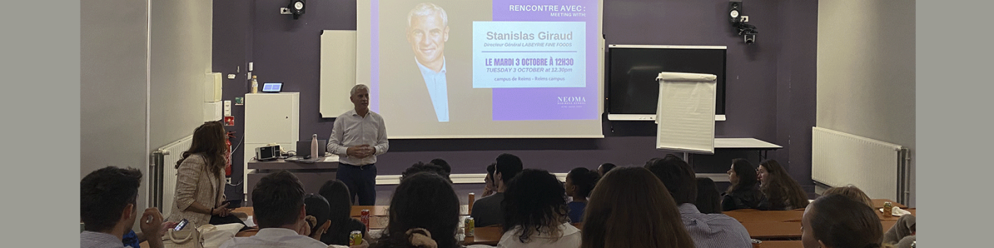 Stanislas Giraud came to meet students on the Reims campus on October 3. Stanislas, who graduated from Master in Management Programme in 1998, is now General manager France Marques at Labeyrie Fine Foods.