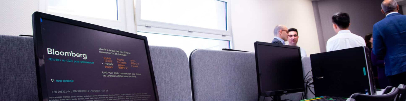 Beyond a simple teaching exercise, the lessons that take place in trading rooms make it possible for our students to learn how to make use of the tools used in the professional world. In a real situation, with real data, students will, for example, have 5,000 euros to invest in the stock market. They will create a portfolio and manage it. Thanks to the data available on Bloomberg, they will assess the profitability, as well as buy and sell the stocks, using what they have learned in class. A realistic and stimulating exercise!