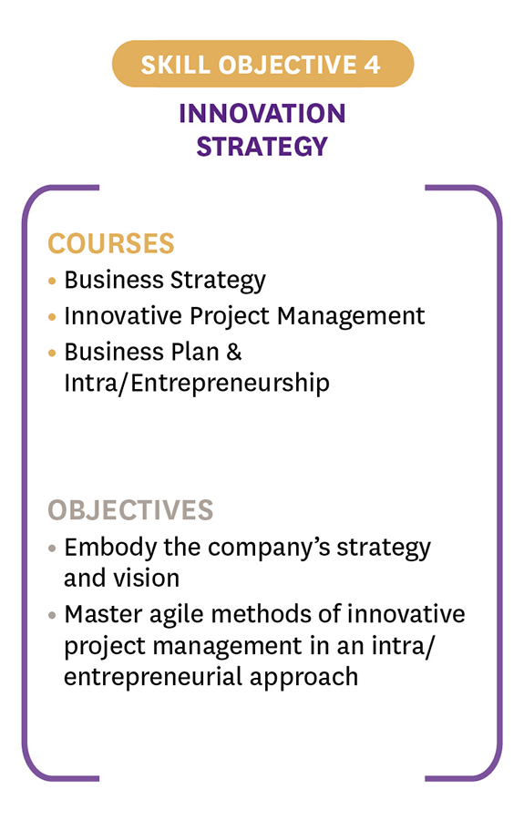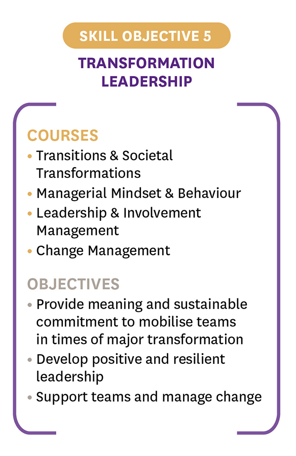 The General Management Programme is structured around five skill objectives which, upon validation, entitle the participant to a RNCP Level 6 title of “Business Unit Management and Development Manager”.